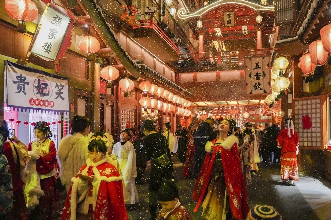 古城西安,腾蛇跃新春·欢乐闹元宵发表时间:2025-02-12 15:22 元宵节吃元宵寓意团圆美满。西安不少地方会举办灯会,如曲江池遗址公园的“2025乙巳蛇年新春游园会”,还有楼观生态文化旅游景区的传统社火表演等,人们还会出门赏月、猜灯谜、放烟花。